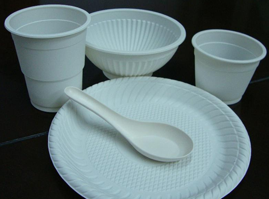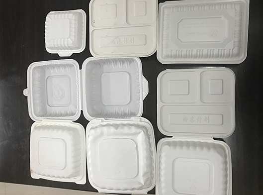 The machine includes an extruder, thermoforming and cutting parts. It uses raw materials such as polypropylene, calcium carbonate, talc, polylactic acid, orange straw, corn starch, wood flour, bamboo flour and other plant fibers to produce degradable cups, lunch boxes , dinner plates, plates, fast food boxes, packaging boxes, supermarket trays, biscuit boxes and other disposable products, scraps can be recycled and produced.