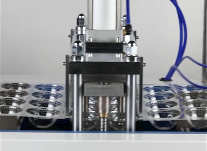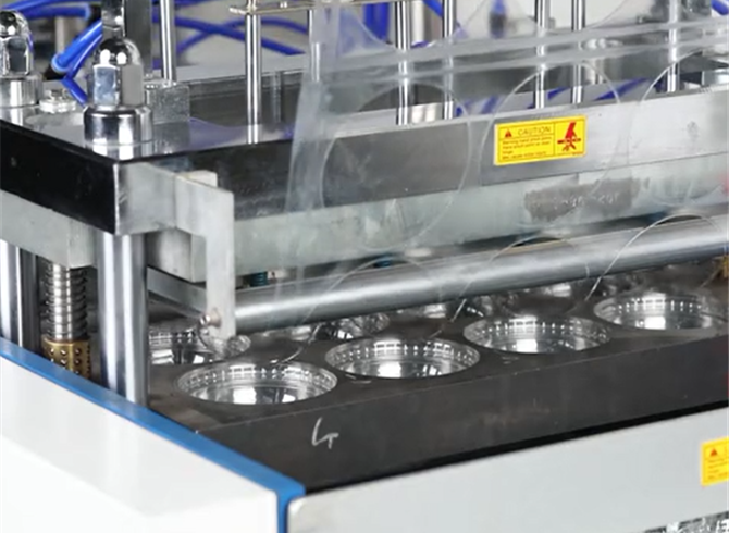 SMC-450L lid thermoforming machine is the molding machine specially used to manufacture disposable plastic cup lids which has three stations: thermoforming, cutting, and product stacking, it is specially used in the production of flat caps, arch caps and heterosexual caps.